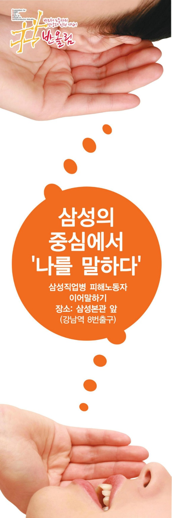 삼성의 중심에서 ‘나를 말하다.’ -삼성 직업병 피해자 이어말하기 (일시: 9/21~23, 장소: 강남역 8번 출구 앞)