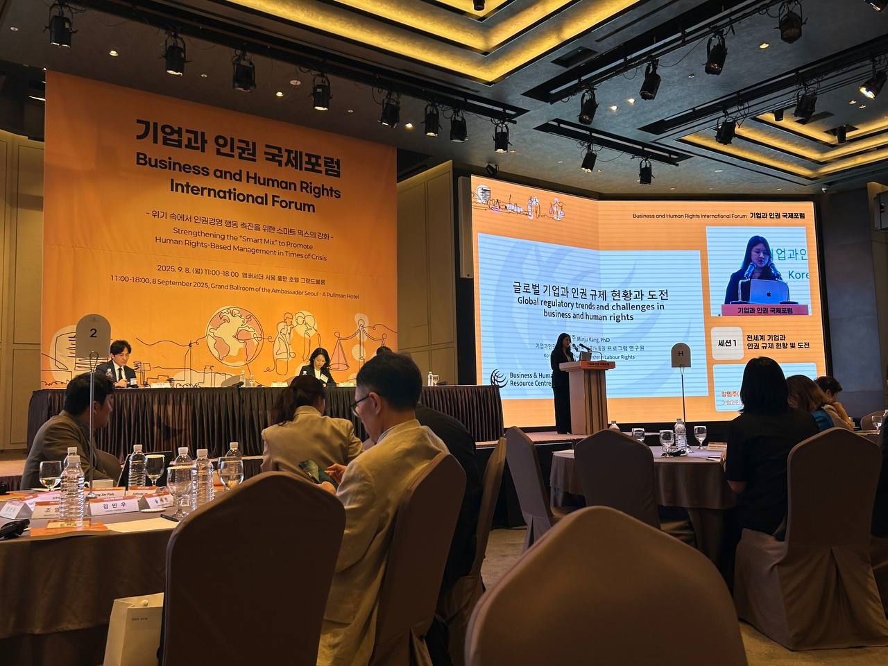 여판통 위원장은 “기업 활동에서 가장 우선되어야 할 것은 사람이며, 권리보유자(인권의 주체)의 목소리를 중심에 두어야 한다”며 “인권침해 피해자들은 위험을 감수하면서도 기업의 투명성과 책임을 요구하고 있다”며, 한국 방문 중 만난 사례들을 소개했습니다. 세종호텔의 복직 투쟁 중인 고진수 노동자의 장기 고공농성, 일본 기업 니토덴코와 자회사인 한국옵티칼하이테크 해고 노동자와의 대화 촉구, MBC 직장 내 괴롭힘으로 극단적 선택을 한 고(故) 오요안나 기상캐스터 유가족의 단식 농성을 언급했습니다. 포럼에 함께하진 않지만, 국제 사회에 그들의 목소리가 전해졌습니다. 보람되고 기뻤습니다.
