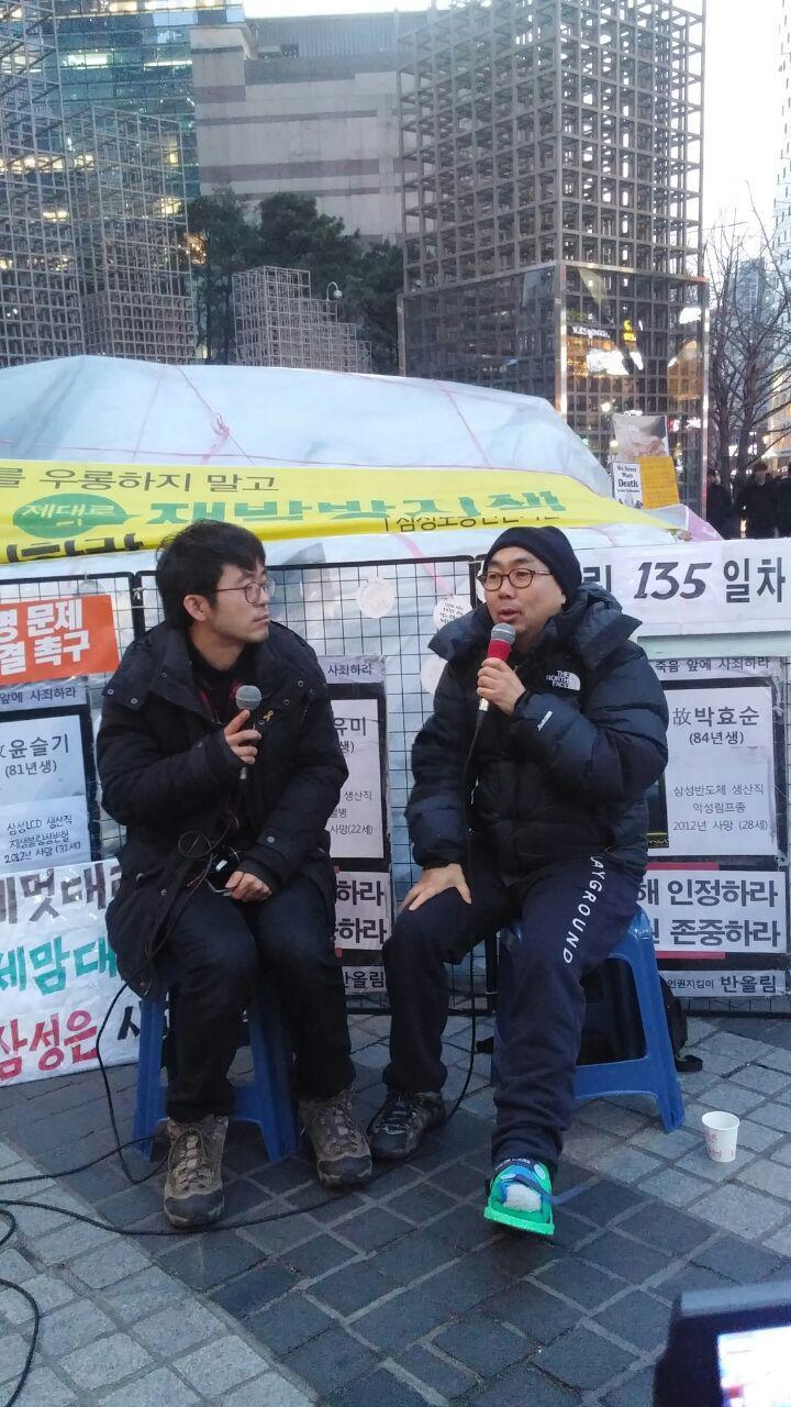서- 삼성은 사람을 생각하지 않는 것 같다. 삼성에 대한 환상, 초일류 기업, 돈을 많이 벌 수 있다는 환상이 깨지는 건 순간이다. 자본에 대한 확고한 믿음으로 산재, 사람의 생명을 잃는 일까지 얼마든지 덮을 수 있다는 자긍심이 크다. 노동자를 생각하지 않는 기업이다.