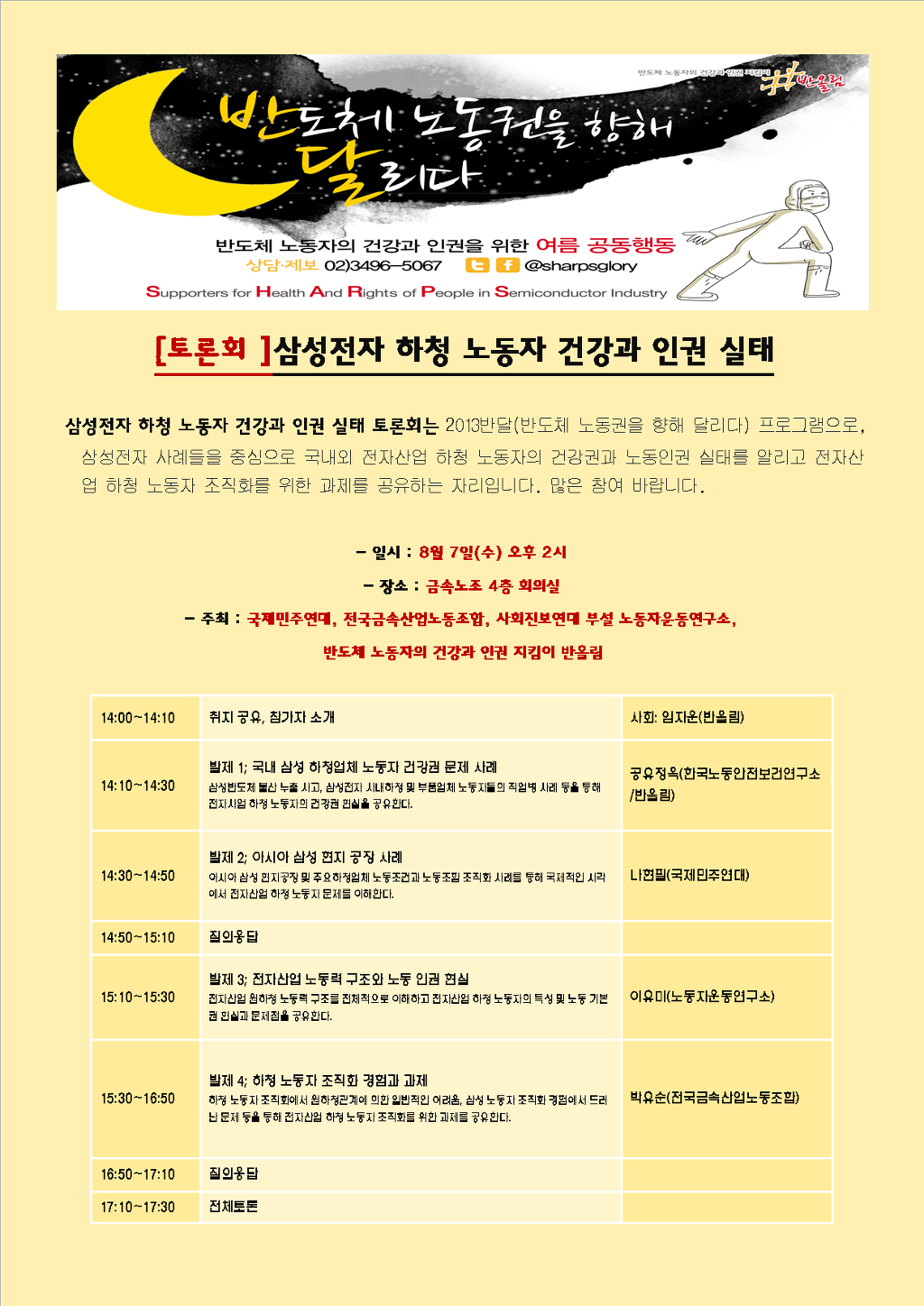 [2013.07.29] 8월 7일(수) 오후2시, 삼성전자 하청 노동자 건강과 인권 실태 토론회