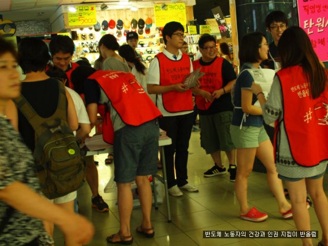 “이게 뭐꼬?! 저건 뭐꼬?”딱 두 마디로 깊은 관심을 보이는 부산 시민 분, TV에서 봤다며 묻지도 따지지도 않고 탄원서에 사인을 하는 시민 분, 버튼 두 개를 가져가며 제값보다 많이 후원하는 시민 분,“너 여상이잖아”하며 옆친구를 슬쩍 치며 고 황유미 씨 얘기를 듣는 여고생들, 내가 사용하는 물질이 무엇인지 알고, 안전하게 일할 권리를 찾고자 활동한다는 얘기에 고개를 끄덕이며 들어주는 분들에 참 고마웠습니다.