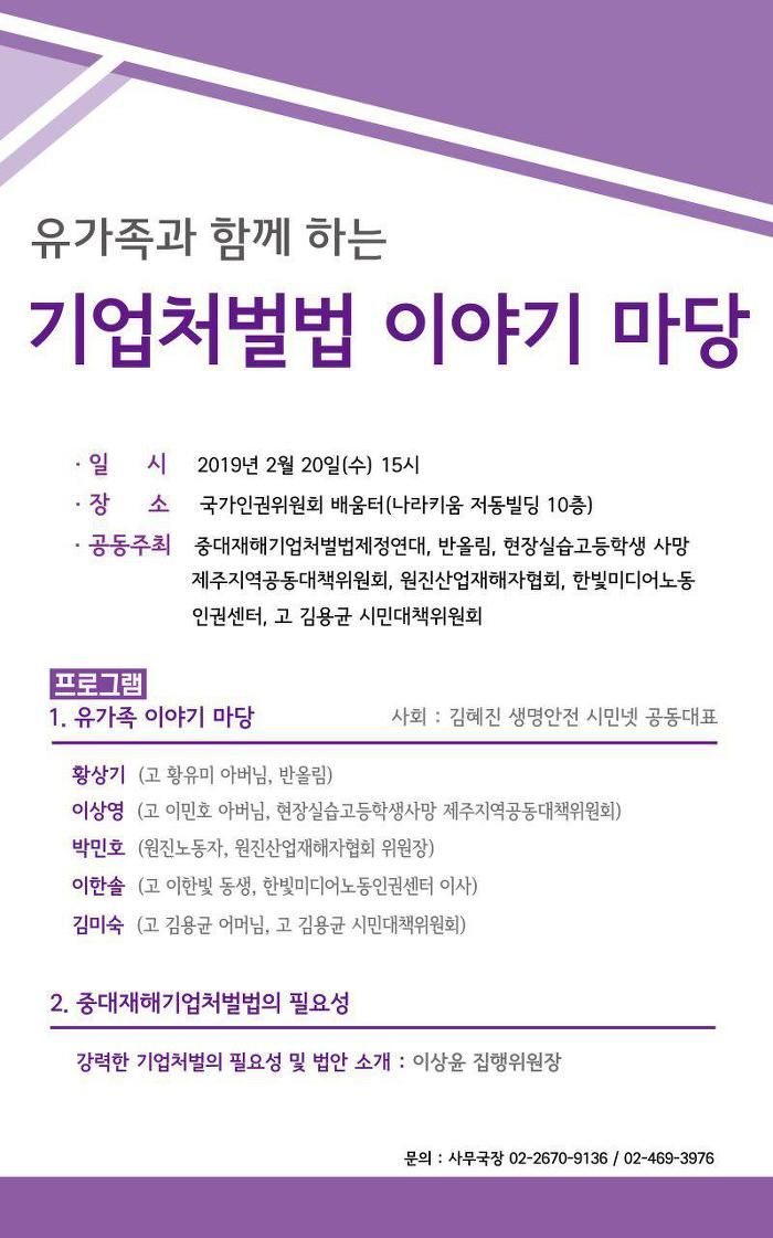 유가족과 함께 하는 기업처벌법 이야기 마당 |