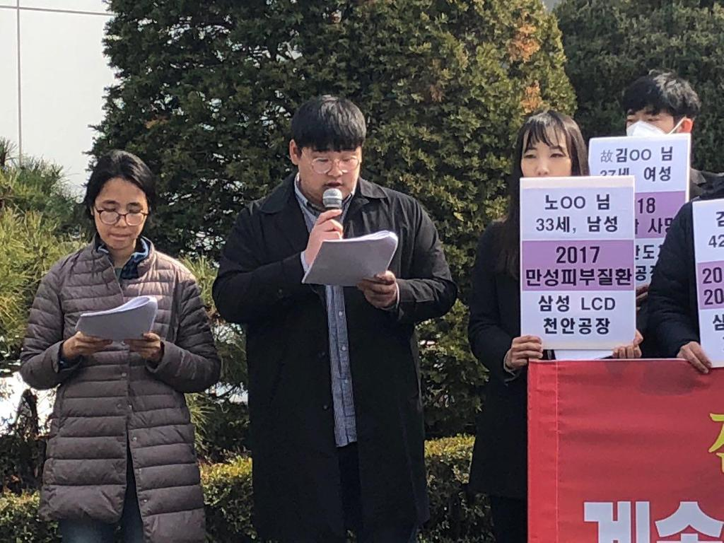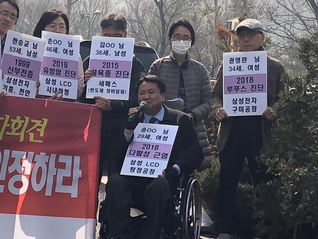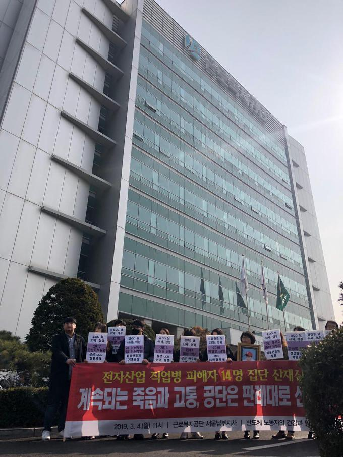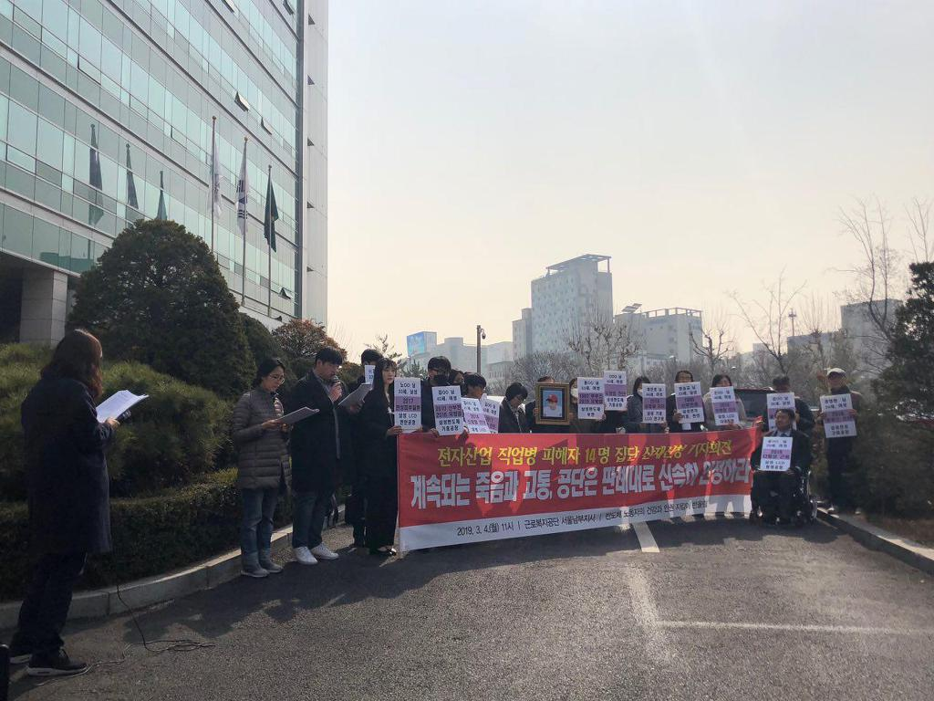 전자산업 직업병 피해자 14명 집단 산재신청 기자회견